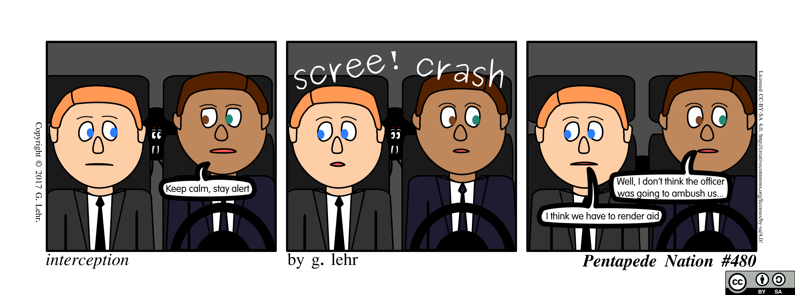 Pentapede Nation Page “interception - Pentapede Nation #480” — Posted by G. Lehr, 2017-06-20 — Tags: federal agents, ligasha, book 4 - project wolf — Metadata (YAML) — Permalink